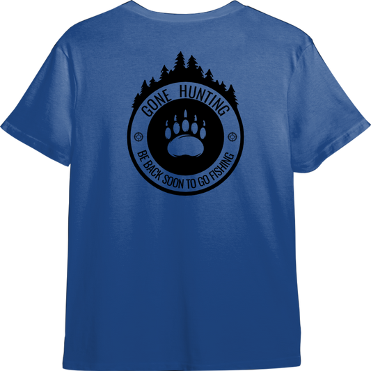Gone Hunting, Be Back Soon To Go Fishing TShirt (Available in 54 Colors!)